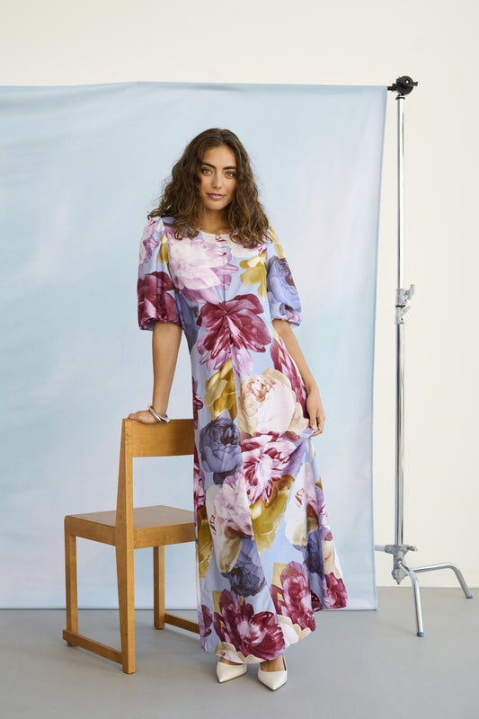 Culture CUmagna Greece Long Dress Blue/Pink/Yellow Flower