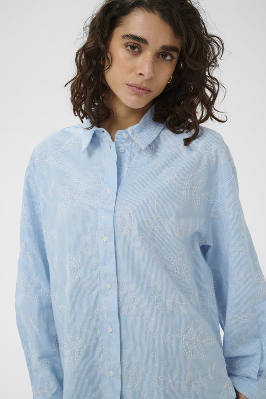 Kaffe Clothing KAmarlee Shirt White Blue Embroidery Stripe