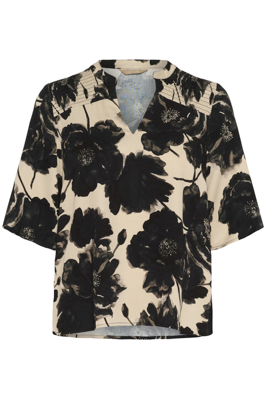 Culture CUrachel Elitha SS Blouse Black/Offwhite Flower