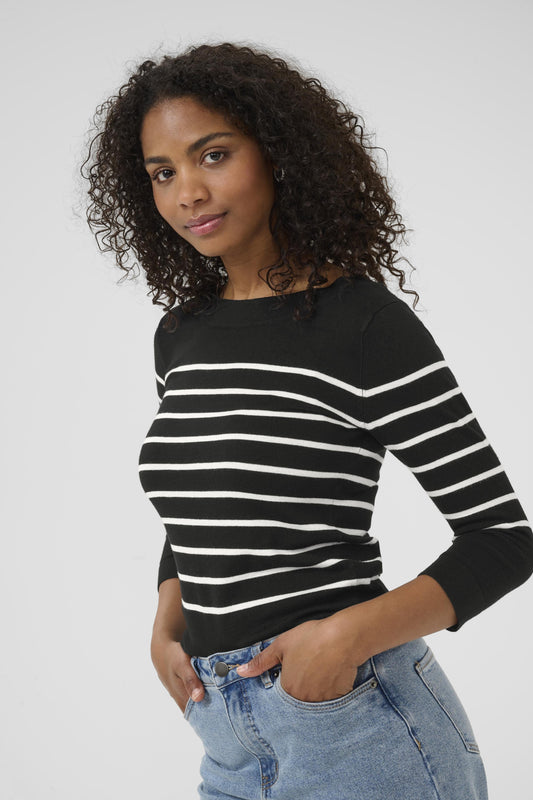 Kaffe Clothing KAlizza Boatneck Pullover Feather Black/Chalk Stripes