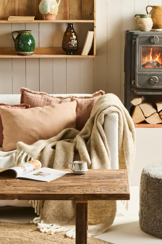 Ib Laursen Pledd Sandfarget m/offwhite frynser
