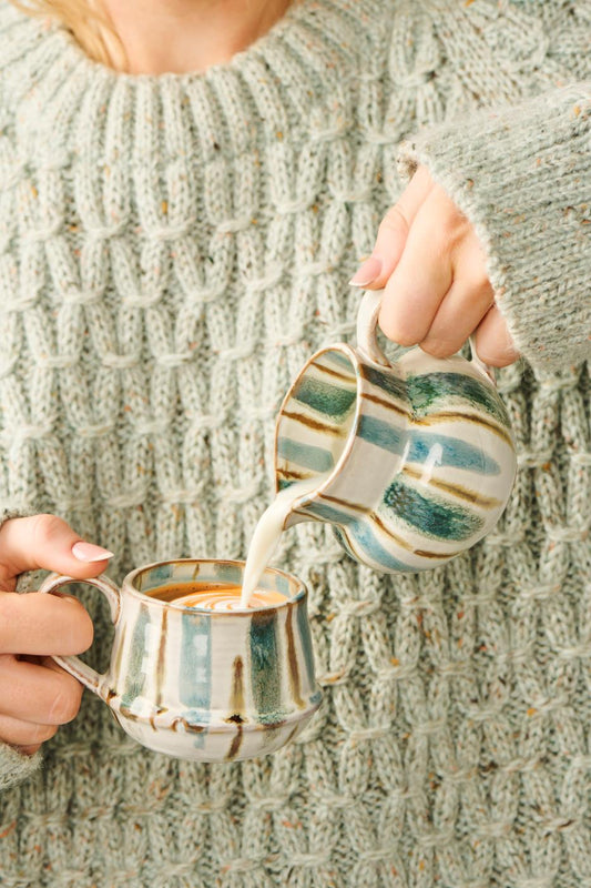 Ib Laursen Fløtemugge m/hank og brede støvblå striper