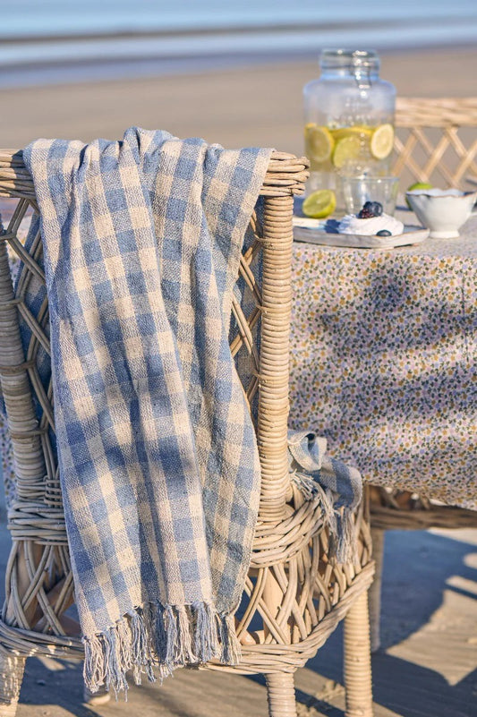 Ib Laursen Pledd Natur/Lyseblå Ruter 130 x 160 cm