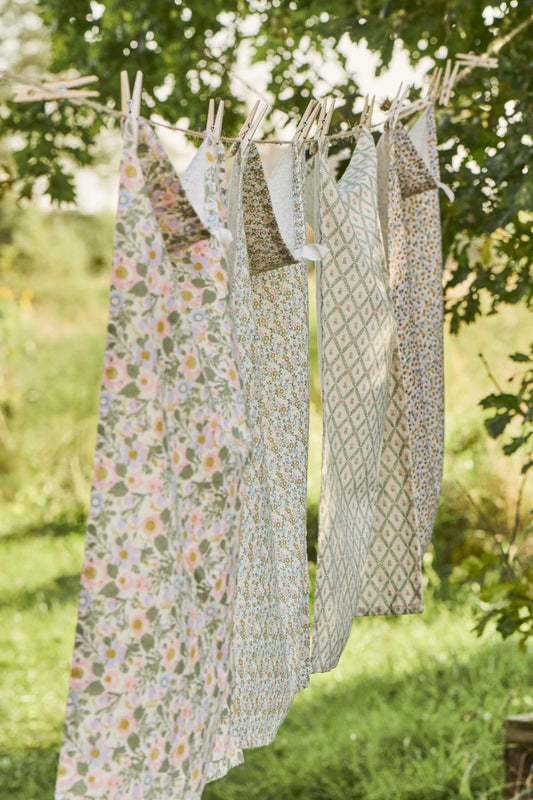 Ib Laursen Kjøkkenhåndkle Bella m/grønt rutemønster og blomster