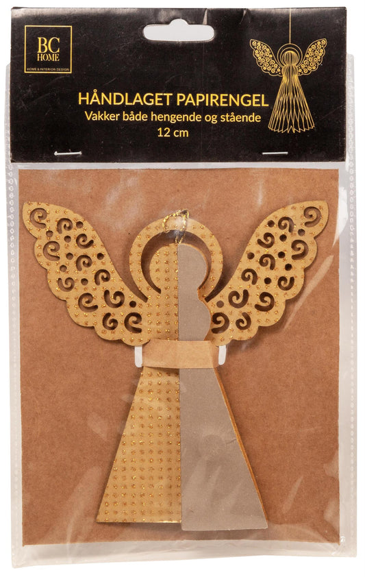 Engel Papir Henge Krem M/Gull 12cm Gullvinge