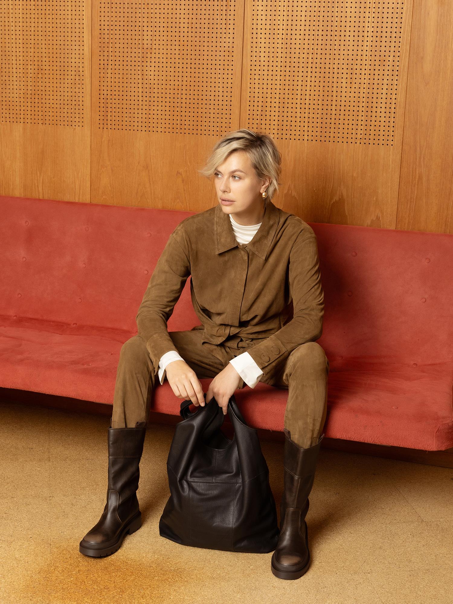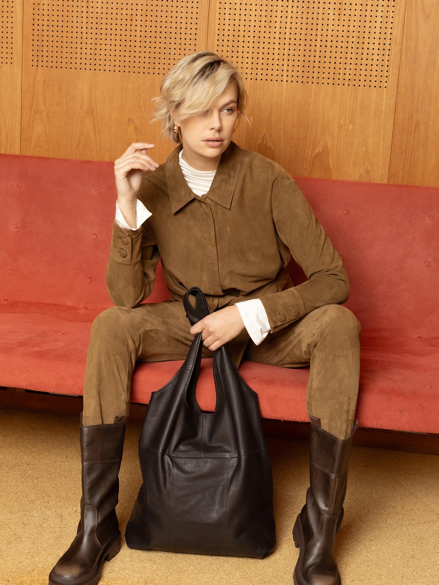 Klassisk veske i lett fullnarvet skinn. Passer til alle daglige behov, med en glidelomme, ufôret for et naturlig utseende, og plass til en 15" bærbar PC.