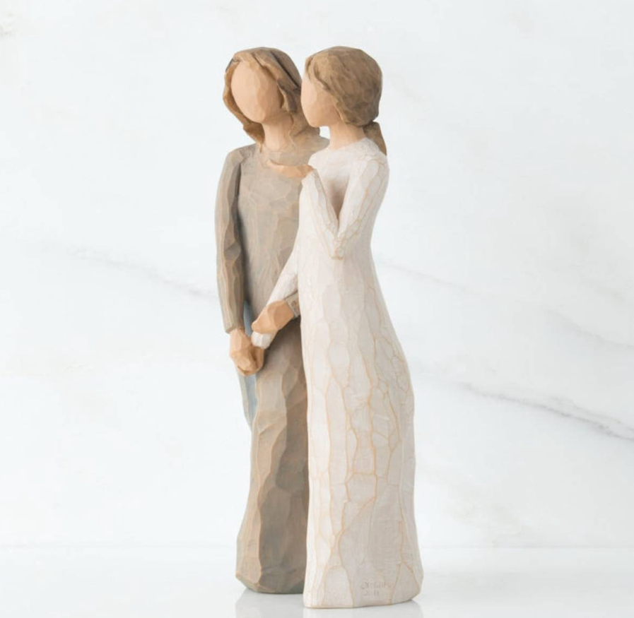 Kunstneren bak Willow Tree, Susan Lordi, lager alle figurene for hånd i tre, så lages det en form som figurene blir støpt i. Figurene er lette, og laget i en blandingsmasse bestående av blant annet plast og gips.
