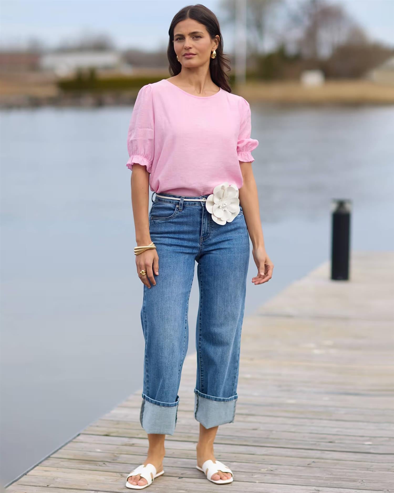 En søt topp med delikat volangkant på ermene, perfekt til både hverdag og fest.