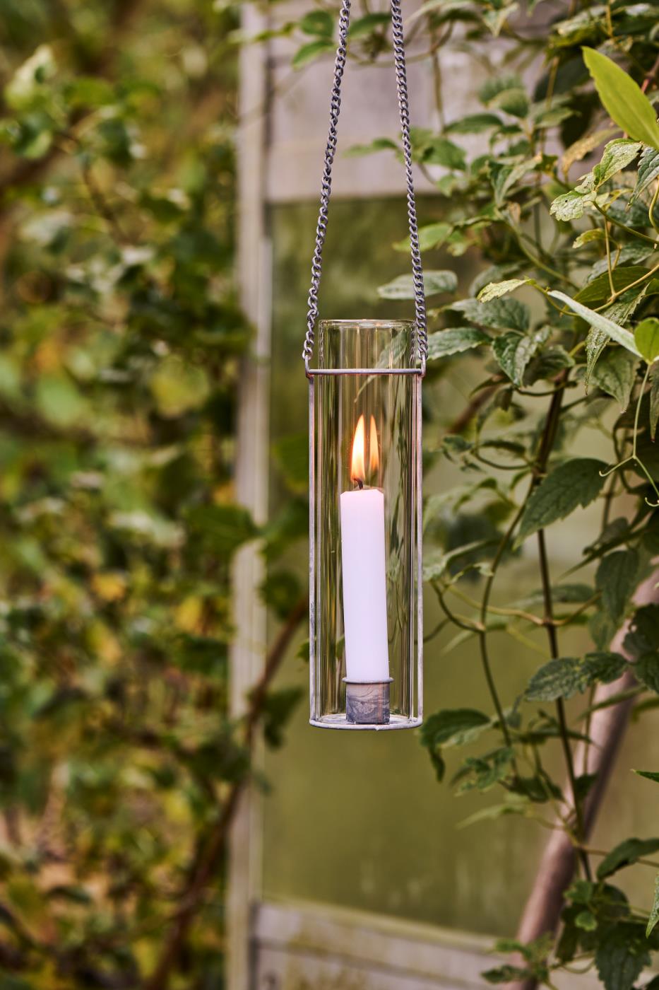 Koselig oppheng til f.eks hagen. Lysholderen har et lanht oppheng og kan festes i trærne eller ut fra vegg f.eks. Lysholderen er beskyttet av en glasskolbe.