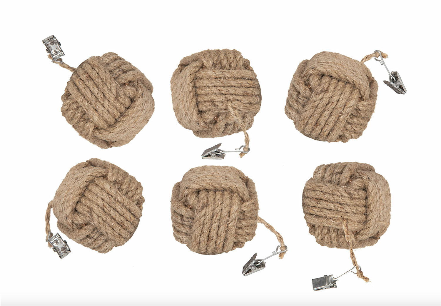 Sørg for at duken holder seg på bordet når du spiser utendørs med disse vektene av juteduk. Vektene har metallklips som er enkle å feste til kanten av duken.