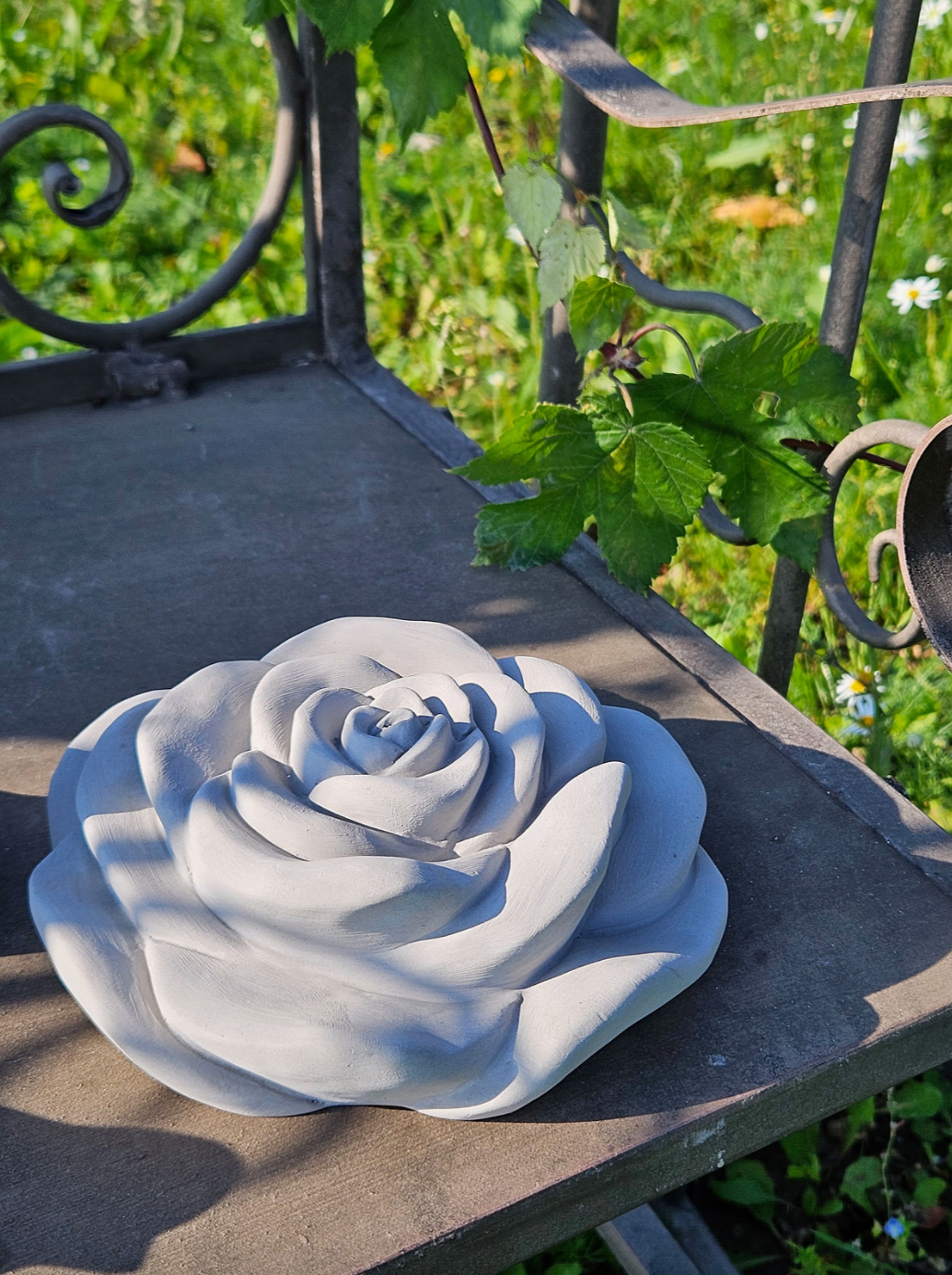 Bli inspirert av floraen og faunaen i hagen eller hjemmet ditt med en stor rose laget av betong.