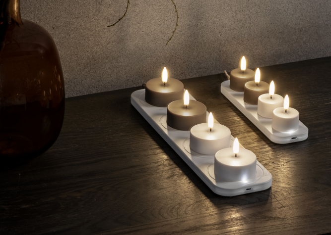 På denne ladestasjonen kan du lade telysene, maxilysene og kubbelysene fra Uyuni.