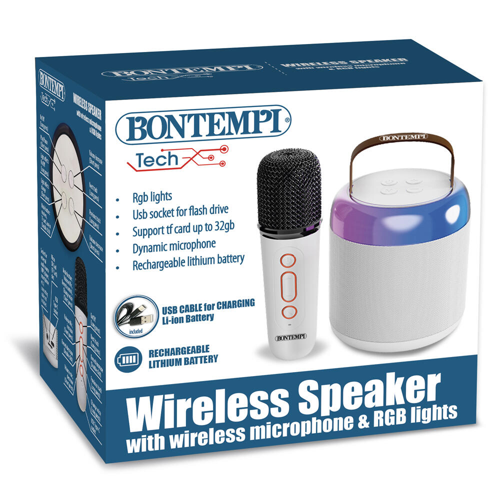 Syng, dans og skap uforglemmelige øyeblikk med denne stilige trådløse høyttaleren fra Bontempi. Perfekt for karaoke, sommerfester eller bare en morsom kveld med venner.