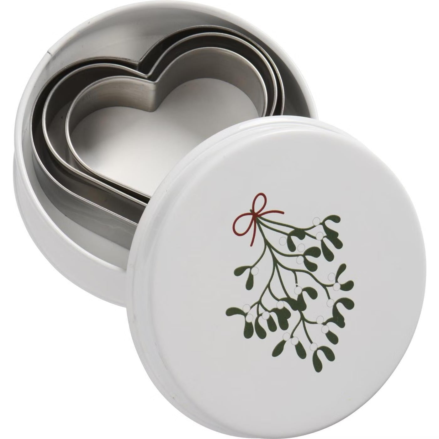 Gjør juleforberedelsene eller juleverkstedet ekstra hyggelige med denne stemningsfulle kakeboksen i metall fra Ib Laursen. Boksen prydes av et sjarmerende mistelteinmotiv på lokket og inneholder tre kakeutstikkere formet som hjerter – perfekte for pepperkaker og andre småkaker.