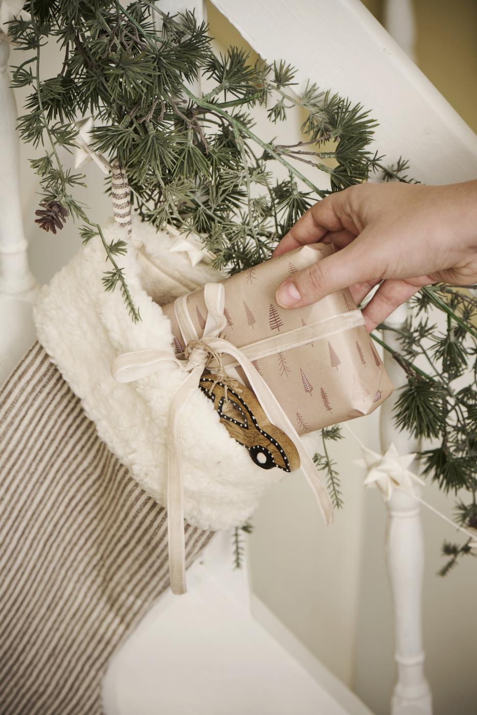 Ib Laursen Julestrømpe Brune/Hvite Striper M/ Hvit Kunstig Pelskant