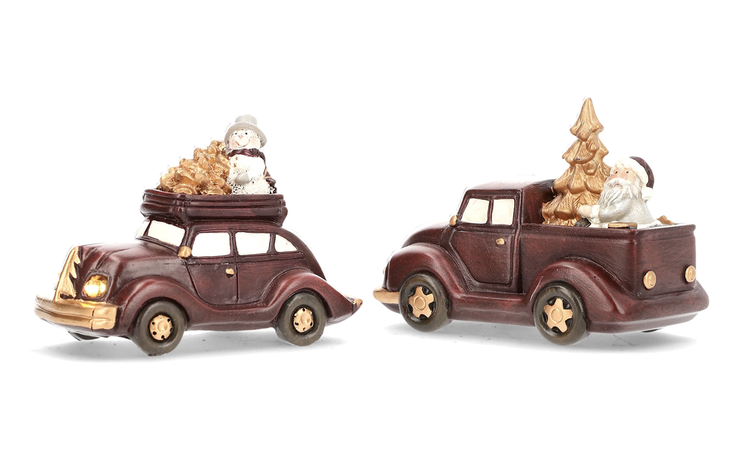 Pynt hjemmet ditt til jul med biler som har et juletre og en snømann, og et juletre og en julenisse.