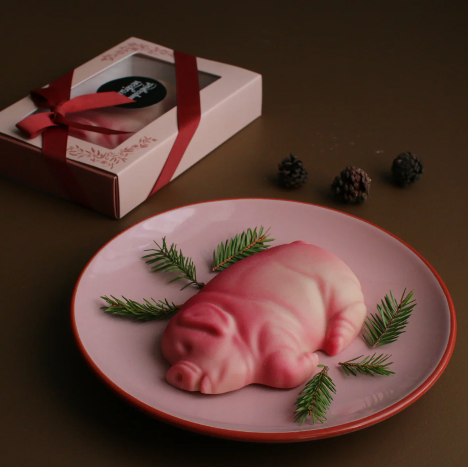 Klassisk marsipangris – en håndlaget marsipangris med 52% mandler i en elegant gaveeske med rødt sløyfebånd. Perfekt som gave eller til å skjemme deg selv.