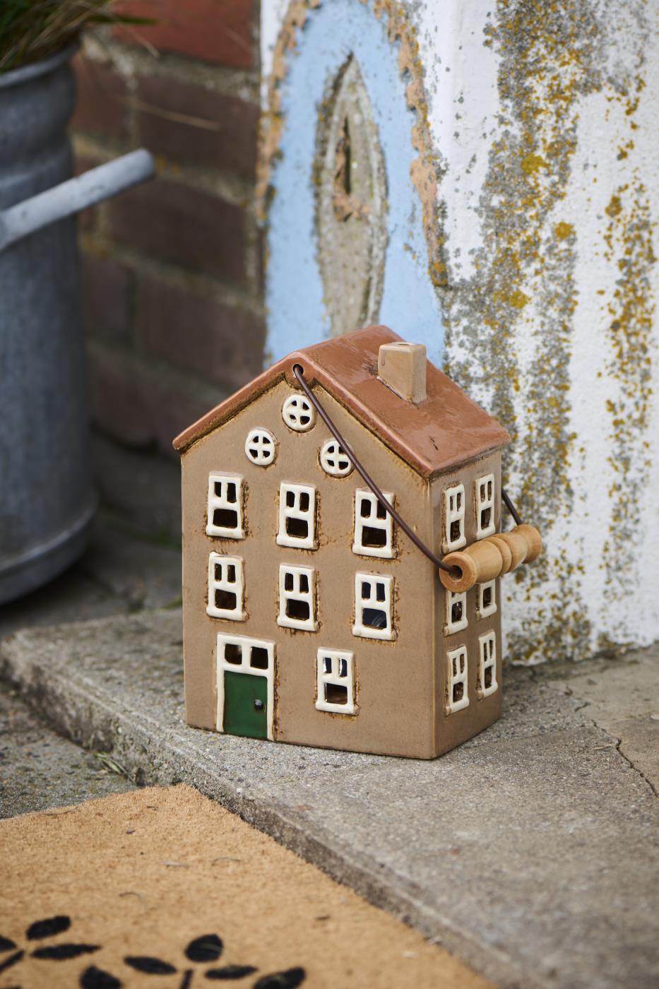 Keramikkhus inspirert av fargerike Nyhavn i København. Hvert hus i serien er unikt med håndlaget keramikk og et rustikt utseende. Skap hygge med stearinlys eller en lyslenke bak vinduene. Bruk dem enkeltvis eller som et sjarmerende lite nabolag.