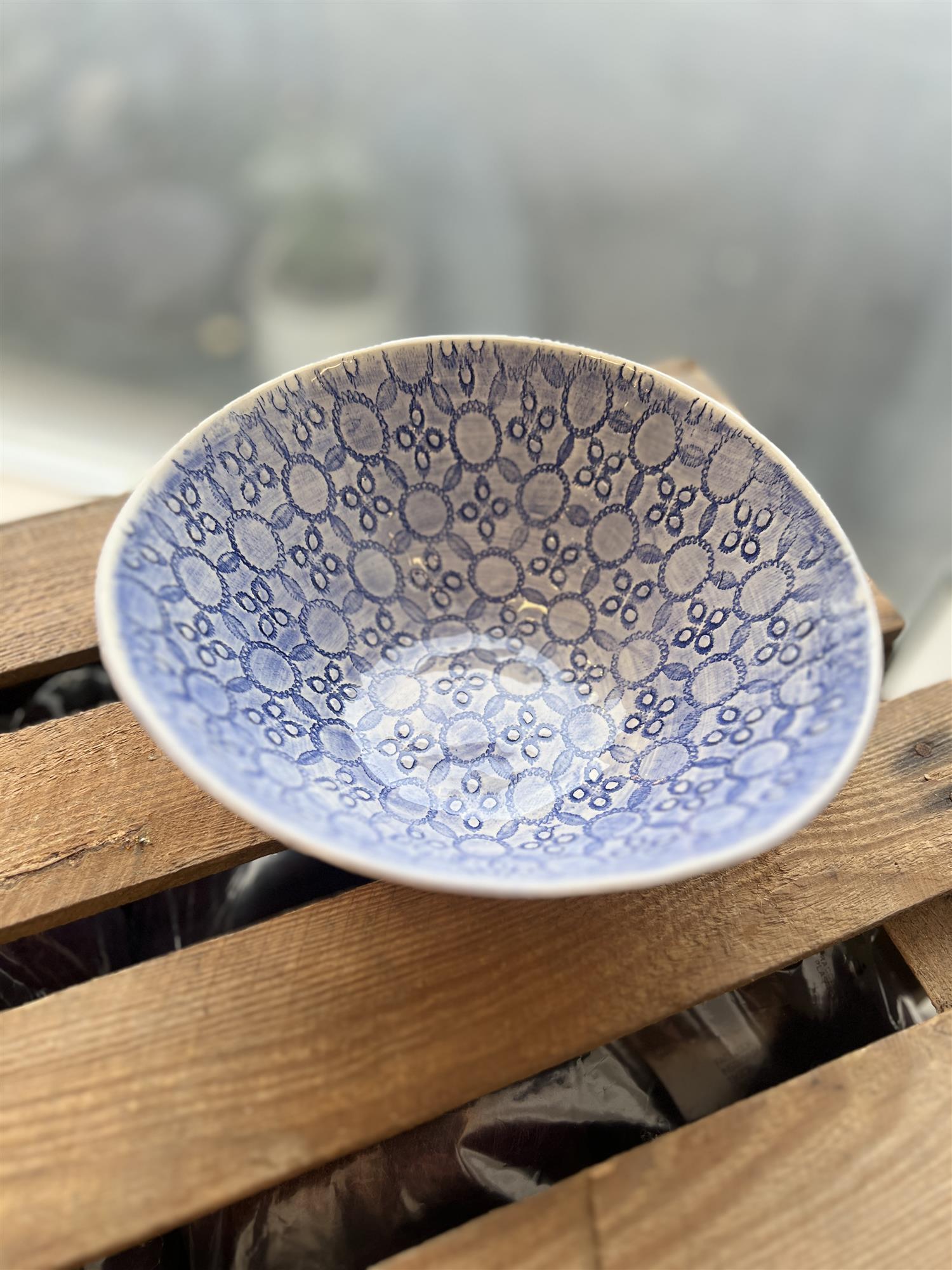 Den runde skålen, er en ren fornøyelse for servering av enkle salater eller grønt! Som alle Wonki ware produkter er de små skålene 100% håndlaget, så størrelsen og formen kan variere litt. Mønstre fra samme serie kan også variere.