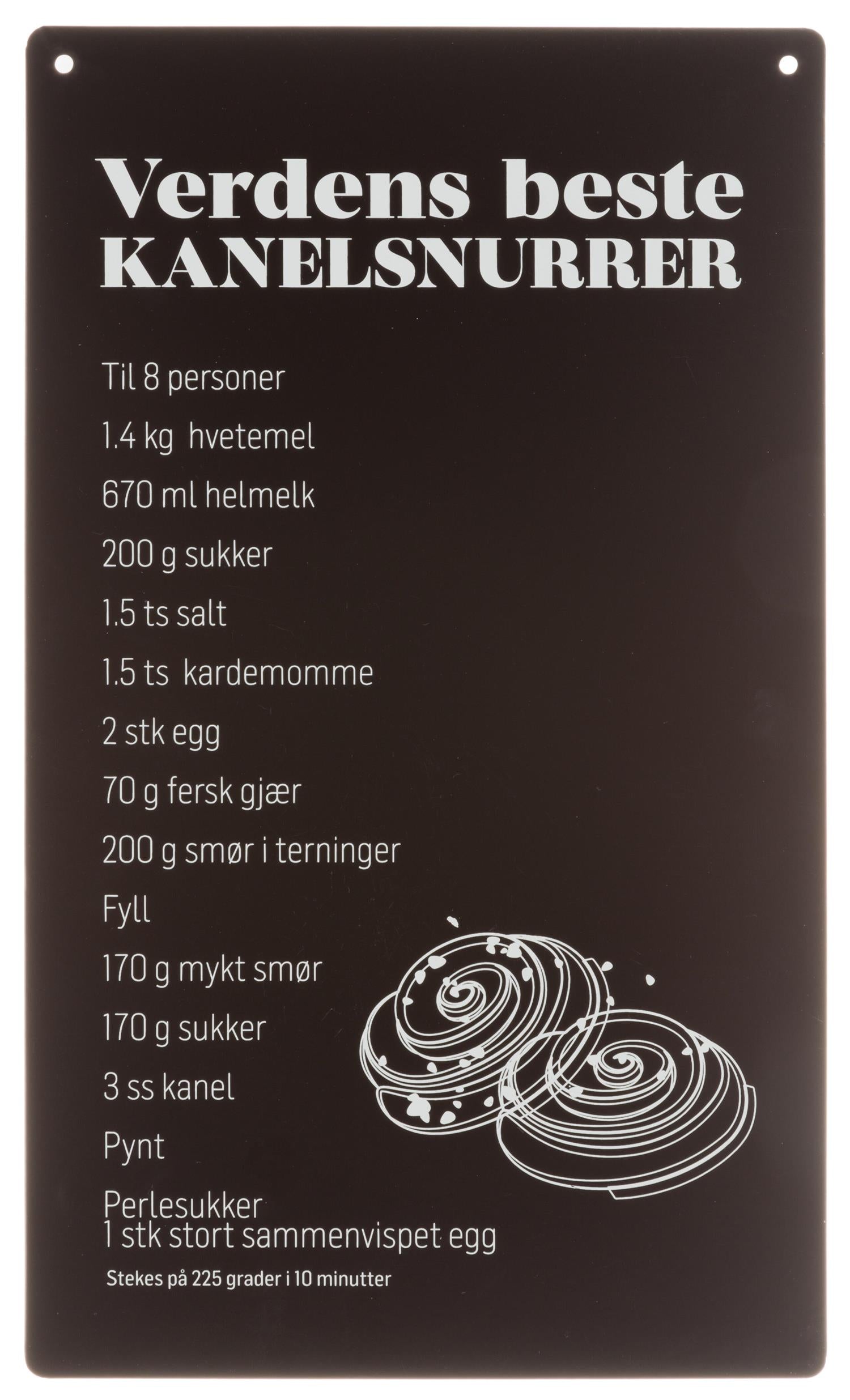 Skilt Kanelsnurrer Oppskrift 16x27cm Metall