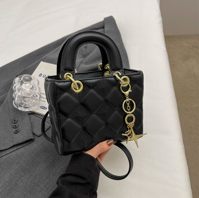 Sort, firkantet veske med lekre gulldetaljer.