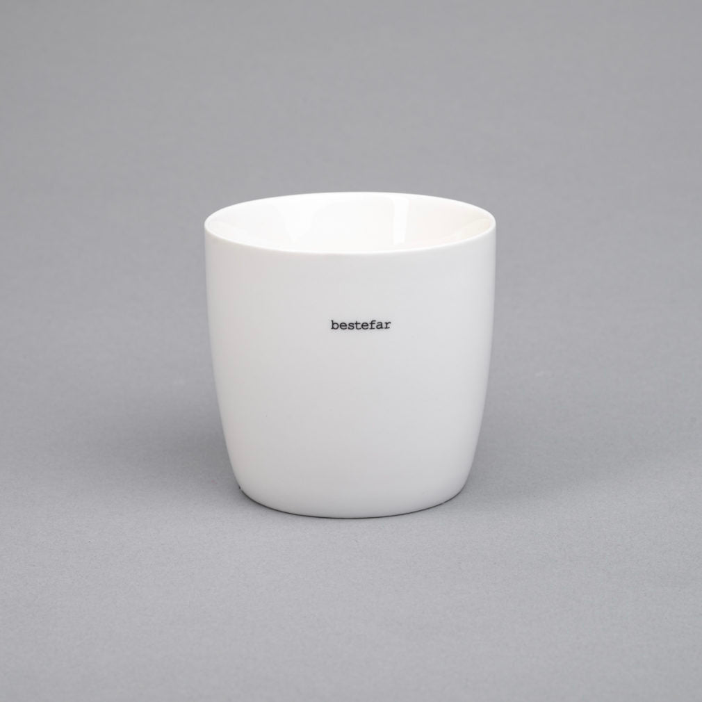 Håndlaget hvitt porselenskrus med hank fra Sögne Home.