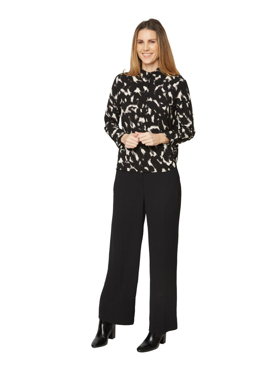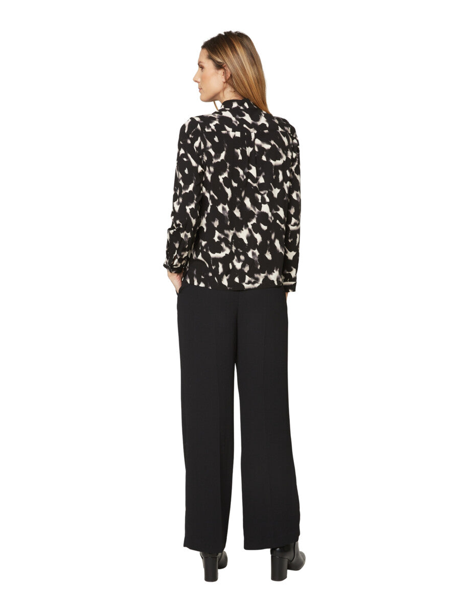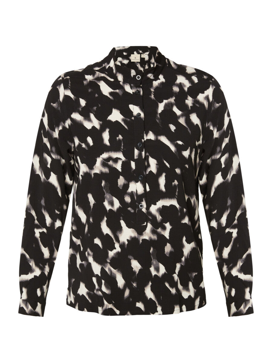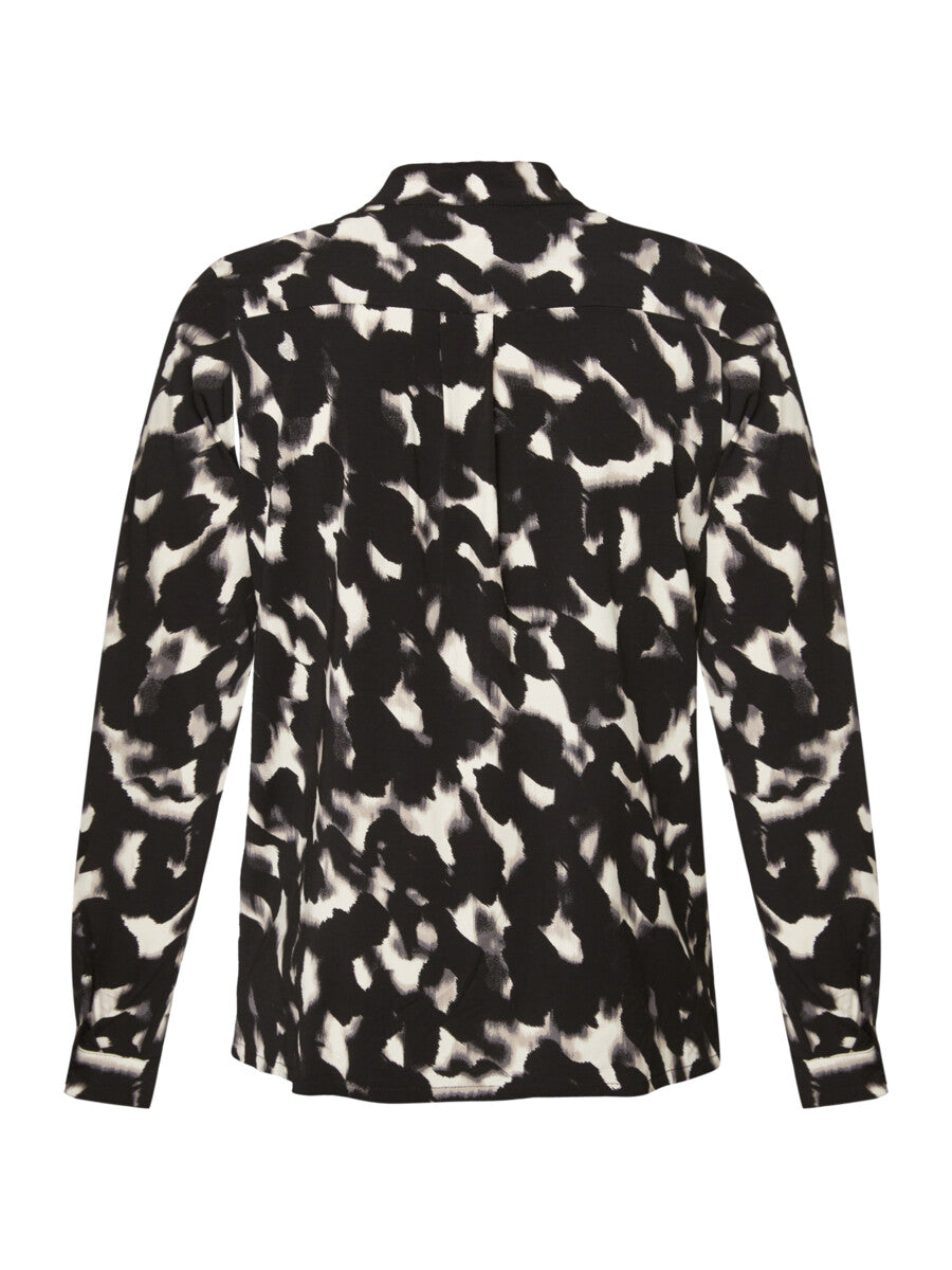 Pen bluse fra B.Copenhagen i viskose. Blusen har høy bondekrage og lang knappelukking foran. Ermene har en fin mansjett og knappelukking. På baksiden er det et snitt med en liten fold, som fremhever det fine mønsteret.